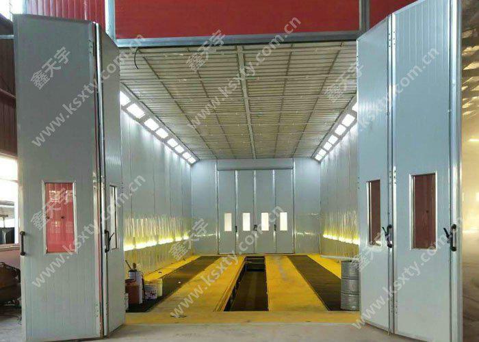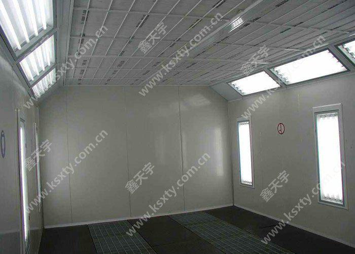 干式噴漆室主要由室體系統(tǒng)、新風(fēng)過(guò)濾系統(tǒng)、漆霧處理系統(tǒng)、排風(fēng)系統(tǒng)、照明系統(tǒng)、有機(jī)廢氣處理系統(tǒng)、廢氣檢測(cè)系統(tǒng)(可選配)、控制系統(tǒng)等部分組成。棚頂設(shè)進(jìn)風(fēng)過(guò)濾裝置,使進(jìn)入漆房的自然風(fēng)得到初凈化。在漆房的棚頂外側(cè)裝有防爆照明燈。漆霧過(guò)濾系統(tǒng)主要功能是過(guò)濾及吸附漆房中的漆霧與溶劑,確保排出室外的空氣質(zhì)量。排風(fēng)凈化裝置分兩段,前一段為漆霧過(guò)濾裝置,過(guò)濾廢漆;后一段采用活性炭吸附。