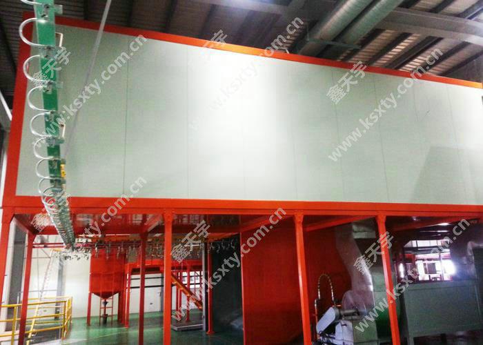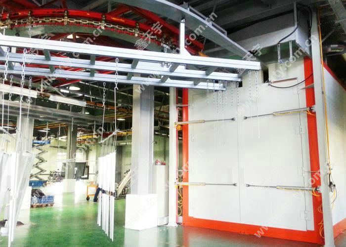 工件物經(jīng)噴涂過后粉末需經(jīng)過烤爐烘烤至200度使粉末固化。